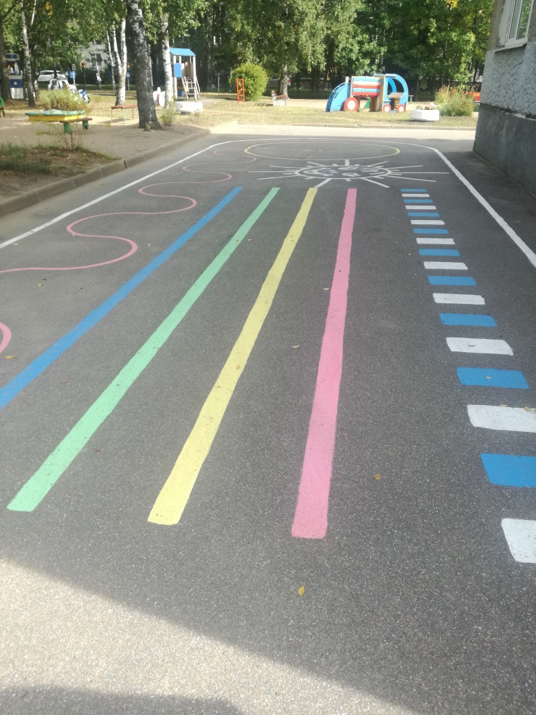 Детский игровой комплекс "Дорожка здоровья" располагается на асфальтовой части территории вокруг здания детского сада, создан для расширения двигательного опыта ребенка и обогащения новыми координационно сложными движениями. Используется как дополнительный ресурс для повышения двигательной активности детей во время прогулки. Каждый рисунок на асфальте "Дорожки здоровья" - это игра, которая может быть использована по-разному. Эти игры помогут воспитателям интересно провести утреннюю гимнастику, физкультурное занятие, прогулку, организовать самостоятельную деятельность детей и индивидуальную работу по развитию и совершенствованию двигательных навыков умений.
